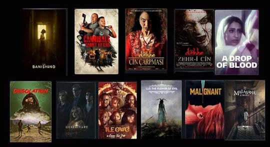 THE BANISHING (2020) dir. Christopher Smith – British 1930s haunted house horror, but with a lot of religious guilt and complicated dynamics in the nuclear family that is falling apart. Very typical of this genre, but Church of England rather than Roman Catholic.CANNIBALS AND CARPET FITTERS (2017) dir. James Bushe – carpet fitters come up against a family of cannibals in the British countryside. Low budget slasher with Hot Fuzz/Cockneys vs Zombies/Texas Chain Saw Massacre vibes.D@BBE 4: Cin Çarpması/The Possession(2013) dir. Hasan Karacadag – Turkish franchise linked by the central concept (explained in each film) that the internet is predicted in the Qur’an as a mark of the end times. This isn’t really that important in this film, which works as a standalone tale of jinn possession, and is focused on the women of a family plagued by the possession of a young woman, Kübra. Her cousin Ebru is a sceptical psychologist, but she finds a Hoca, Faruk Akat, to come and exorcise her afflicted cousin and films the whole thing. It’s really about generational curses, trauma, jealousy, and betrayal, and the pursuit of wealth at the expense of one another as the root of evil in the family history.D@BBE 5: Zehr-i Cin/Curse of the Jinn(2014) dir. Hasan Karacadag – another standalone film but it works really well as a double bill with Cin Çarpması. This time the focus is on a couple, but the themes of family and generational guilt (and communal guilt) are developed at the end, and I appreciated the twists and turns. This one also has the added vicious class commentary, present in Cin Çarpması (Ebru is a doctor in the city, while her cousins live in a poorer village), but really explicit here, with the wealthy preying on the poor, but the poor being complicit in their own oppression and willingly committing acts of evil for money. In this case, the creepy evil village was half Muslim and half Christian, as opposed to the village in Cin Çarpması, so nobody gets to feel superior in this franchise. A lot of religious angst and unresolved family trauma in this film.DESOLATION (2017) dir. Sam Patton – USA film, where a widow goes hiking with her son and her sister but they are stalked by a hunter who treats them like prey. It doesn’t deliver on the action of the premise so don’t go into thinking it’s a revenge film or action-packed thriller, it’s another atmospheric slowburner that doesn’t quite work with the silent stalker as a metaphor for grief/trauma, but could be read that way. It works better as a film about family bonding in the face of extremity, where it’s easier to deal with the present, tangible threat, than it is to deal with the weight of something existential like grief and loss.قطرة دم/A Drop of Blood (2015) dir. Nasser El Tamimy – Emirati film focusing on a divided family, where the stepmother secures the services of a magician to summon a jinn and torment her stepdaughter. Shot in a very overexposed way that makes it look like a 1960s film to me!HEREDITARY (2018) dir. Ari Aster – US American family explore generational trauma and curses in a very literal fashion, but it’s a really good, twisty film. I enjoyed this one. There’s no ambiguity about the ending, which I found fairly blunt, but I really liked how it was shot and how things developed. Exploration of grief, a lot of references to mental illness, mentions of suicide, DID, and schizophrenia.ILE OWO/House of Money (2022) dir. Dare Olaitan – Nigerian horror that feels very much like a dark folktale, focusing on the descendants of a rich man nicknamed Owo (patriarch of the house of Owo), who in the modern world are billionaires but with a very sinister secret. Ready or Not meets The Invitation.LUZ/Luz: The Flower of Evil(2019) dir. Juan Diego Escobar Alzate – Colombian folk horror fantasy, slow and atmospheric, with the dispassionate landscape and an angelic looking blond boy who says nothing (trauma), imprisoned by fanatical preacher El Señor in the belief he is the Messiah to be (I guess?) the physical representation of a silent God, chained in the theology of the preacher. I don’t know. There’s a lot going on in this one, including graphic miscarriage and infection from miscarriage as a central plot point.MALASAÑA 32/32 Malasaña Streetdir. Albert Pintó – Spanish haunted apartment horror, set in 1976 Madrid against the background of political unrest, but big cw in this for historic transphobia and ‘hurt people hurt people’ narrative, especially in context of ‘people who can’t have their own kids steal other people’s’. Plus a bit of the magical /mystical disabled person trope. I have a feeling that this is all meant to be symbolic of the political climate of the 70s in Spain, maybe something analogous to historic abuses twisting things out of shape and refusing to allow Spain to manifest its national consciousness in certain ways, I’m not sure. Making the evil ghost a trans woman was unnecessary, and it doesn’t really allow for any kind of positive reading on that, to be honest.MALIGNANT (2021) dir. James Wan – not what I expected in any way, but I enjoyed it?? I think??POLTERGEIST (1982) dir. Tobe Hooper – while this is arguably about the fears of US Americans regarding whose land they’re on, their treatment of the dead/those who have gone before, and the consequences of rampant capitalism that puts profit over people, it centres these anxieties on the quintessential middle class white US American family and targets the innocent angelic little girl, so that the whole battle is for the soul of the nuclear family, and to do this, the trauma of the past and the corruption of the present must be unearthed and confronted.