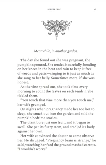 The content notice should anyone need it goes as follows: body horror, transphobia, descriptions of blood, choking, murder, sexism, fertility, childbirth, family expectations, boundary setting, a mention of knives, themes of anger and survivorship, suicide, suggested sexual assault, the dehumanization of people, intimate partner violence, alluded to rape, non-consensual impregnation (sans intercourse), religious trauma, generational trauma, termination, dubious consent/non-consent, cursing, death, grave-robbing, implied past abuse, and semi-erotic content.