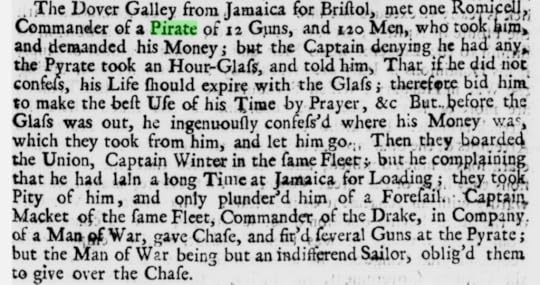 P. S. On Friday next one of their Comrades is to be executed here, for robbing on the Highway some time ago, he was Condemn’d at our Assizes.