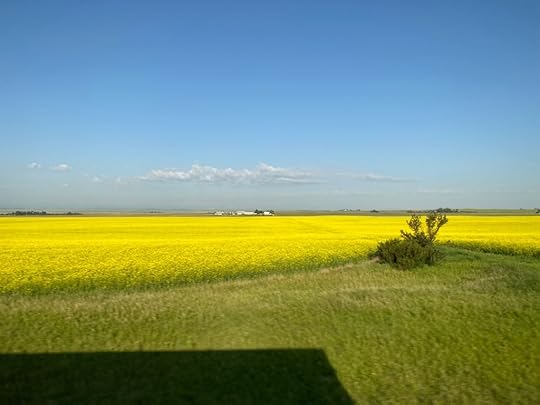 On our way to the Canadian Rockies from Calgary, we rode through the prairies. The pretty yellow crop is canola.