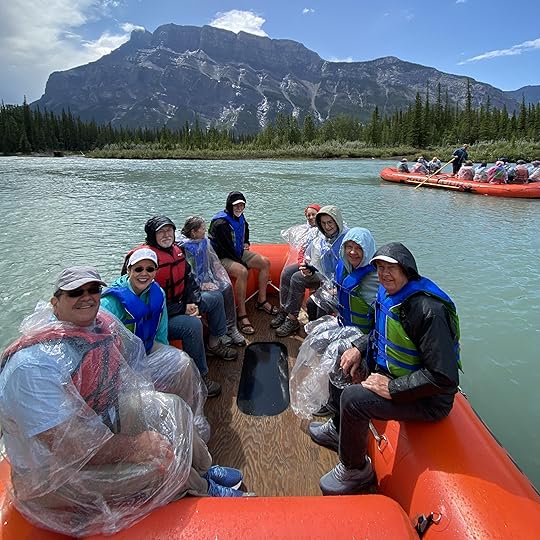 Old folks tubing, billed as a float trip on the Bow River, was another adventure. Can you identify my husband and me in this group huddled together?