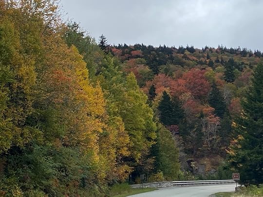 Here’s a roadside view on the Blue Ridge Parkway between Blowing Rock and Boone, NC. Who cares whether the leaves are at their showiest? Plenty pretty for me as I rolled along the twists and turns of this special highway.