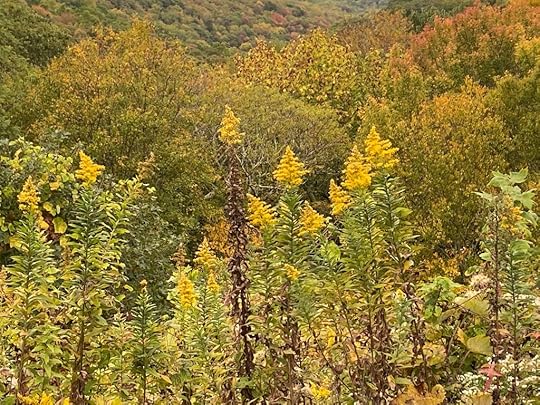 I stopped to take a picture of the humble goldenrod, growing everywhere along the Park Way roadside. Nothing says fall to me more than the presence of this wildflower.