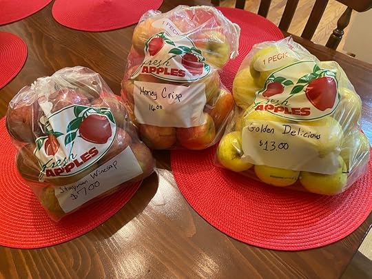A fall trip to the mountains wouldn’t be complete without a stop at the apple stand. They’re not cheap, but these apples seem healthier and taste better to me than the grocery-store ones with the waxy coatings. My favorite this year is the Golden Delicious variety, which, crazy as it sounds, have a hint of pear flavor.