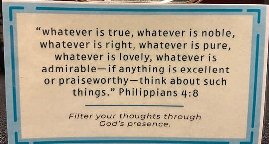 Whenever I feel, as the poet said, “The world is too much with us,” I read this Bible verse I have on a laminated card on my desk.