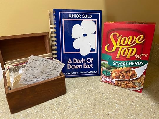 When it comes to cooking, I do believe in fast and easy. Unlike my mother, I buy my collards already cooked. They’re more expensive, but it’s such a time-saver. My dressing is Stove Top. I fix two boxes, doctoring up one by adding a can of drained oysters. It’s as close to Mama’s dressing as I can get.