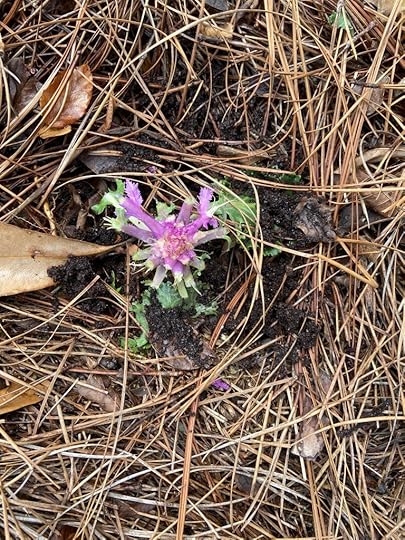 The amaryllis bulb I planted in a pot and put indoors in November, naively thinking it would bloom by Christmas, has only a shoot that looks similar to those on the daffodils outside. I bought this bulb, which was dug out of someone’s yard, at a garden club sale. Evidently, I should buy one of those waxed types sold in the big box stores if I want a flowering amaryllis during December. I think the bulb likes the light and the humidity in my bathroom, though.