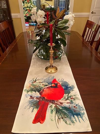 I did change the runner with the Christmas tree design in the dining room, mainly because I want to enjoy the redbird pattern for a while.