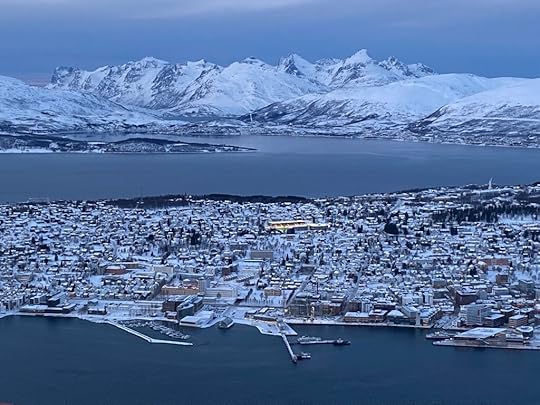 Before getting on the boat, we toured Tromso, which is actually a lovely city of 78,000, making it the largest city in northern Norway. Here’s an ariel view of the city I took after riding a cable car to the top of Big Rock Mountain.
