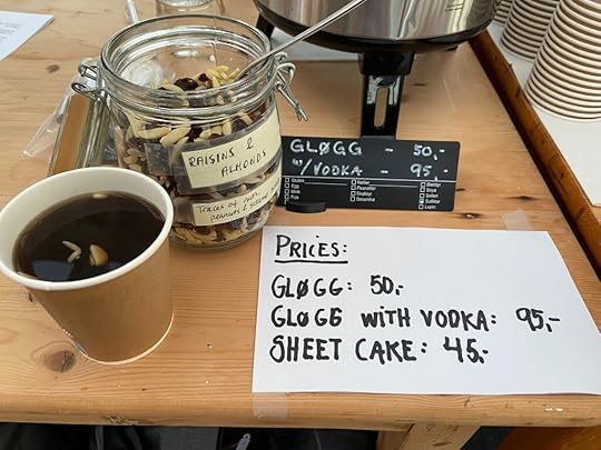 An interesting beverage I had was glogg, a mulled wine. I chose the without-the-vodka option, by the way, since it was noon and I don’t like vodka. I was advised to garnish it with raisons and almonds, which made it a little difficult to drink, in my opinion.