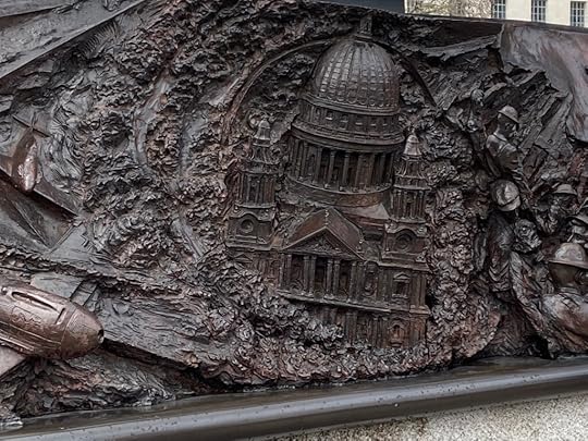 London still suffered heavy damage from German bombing during what is called the Blitz, which lasted from September 1940 through May 1941. St. Paul’s Cathedral was somehow miraculously spared although everything around it was destroyed, as depicted on The Battle of Britain Monument. Terrible times for the British.