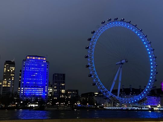It was early evening when we left the Churchill War Rooms, and the London Eye was lit up. On our first trip to London years ago, we’d taken a ride on this giant enclosed Ferris wheel, which allows a panoramic view of London.