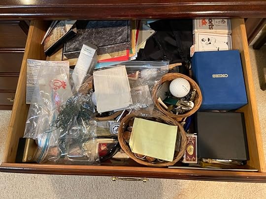 February hasn’t been all candy and flowers, though. Cold weather has kept me inside, so I’ve used the time to clean out my dresser drawers. One junk drawer in a bedroom should be enough, I decided, not the several I had.
