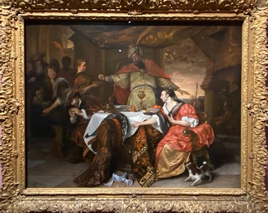 Jan van Steen, a contemporary of Rembrandt, also painted scenes from the story of Esther. “The Wrath of Ahasuerus” depicts the undoing of the villain Haman.
