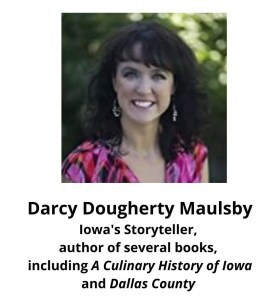 Darcy Dougherty Maulsby is Iowa’s Storyteller and part of family that operates a Century Farm in Calhoun County near Lake City and Yetter. She also runs her own marketing/communications company, and is the author of several books, including A Culinary History of Iowa, and Dallas County.