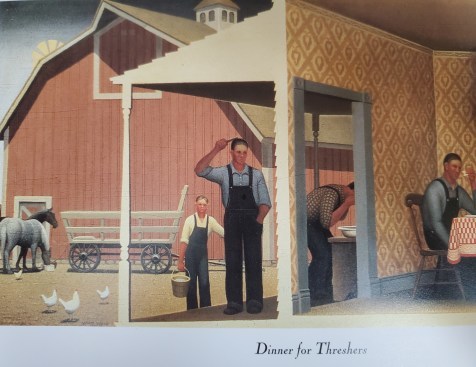 I’ve always enjoyed Grant Wood’s artwork, but was reminded of it again with my immersion into Iowa during the Great Depression. Wood’s art is compelling and whimsical at the same time.