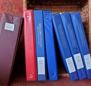 A couple of years ago I began typing up the notes chronologically and merging them with clippings, letters, postcards, significant dates. They are now safely in notebooks, which I’m pretty sure our son would at least take home before summarily tossing them. And by then, he just might find them fascinating.