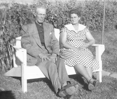 Kenneth and Ruby Neal, near the brick patioWhen you knocked at the back door, Grandma’s falsetto echoed from the kitchen, “Come in!” She’d greet you, wiping her hands on her cross-stitched apron. Mornings you’d catch her kneading bread dough or baking a pie or thickening a batch of apple butter. Afternoons, as likely as not, she’d be stitching on a quilt–Double Wedding Ring, Grandmother’s Flower Garden, and Dahlia Star Flower being favorites–using scraps from sewing dresses and aprons and curtains and work shirts.