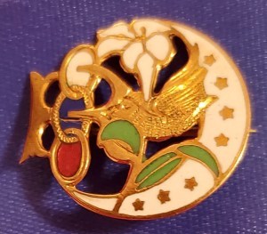 This is a reversible ribbon badge that would have been worn by members in the early 1900s. The colorful side was worn during IOOF rituals and meetings and the “mourning side” was worn facing out during funerals and in the month of November and December when the lodge recognized the passing of members from that year.