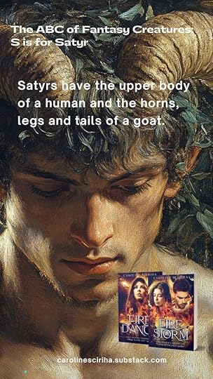Satyrs have the upper body of a human and the horns, legs and tails of a goat. They are known for their love of music, revelry, and mischief and are to be found in forests and meadows living a carefree and wild life.