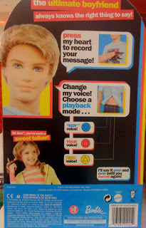 Sweet Talkin' Ken - the ultimate boyfriend who always knows the right thing to say. Press a button and talk into his stomach, and he'll repeat what you said. In a 'Ken' voice! It really worked (of course, I had to try it out).