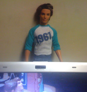 Meet Ryan. He's one of Ken's friends. His packaging called him 'Ken', but I mean really, you can't have 2 dudes side by side at the store and call them the same name when they are clearly not the same guy. *shakes head at the marketing dept* One of kidlet's barbie books had barbie's friends in it, and there was a cute little hottie with dark hair named Ryan. So I've decided he's Ryan.I haven't abandoned the Princes, but those 2 are officially the kidlet's and live in the bin of barbies. Ryan hangs out on my desk behind Pretty. He'll be my company in the cave for the next 2 weeks and 4 days.