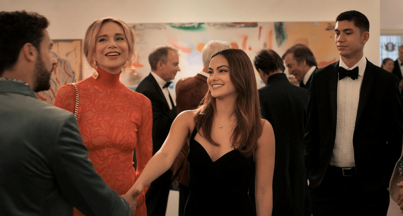 Directed by Carlson Young, “Upgraded” begins with Ana seriously explaining a painting by Hilma af Klint to her sister Vivian (Aimee Carrero) and brother-in-law Ronnie (Andrew Shulz), but the latter couldn’t care less and just wants Ana out of his New York apartment. The whole dynamics between the family was hilarious, plus Aimee Carrero and Camila Mendes look adorable as onscreen sisters. Unfortunately, the sister and BIL are pretty much forgotten after the first few minutes. Marisa Tomei portrays Ana’s boss, Claire, a perfectionist who doesn’t tolerate tardiness and possesses a keen eye for both detail and talent. There’s a subtle “Devil Wears Prada” kind of situation going on with Ana, especially when Claire decides to make Ana her third assistant, but Ana gets to have a lot more fun than you’d imagine.