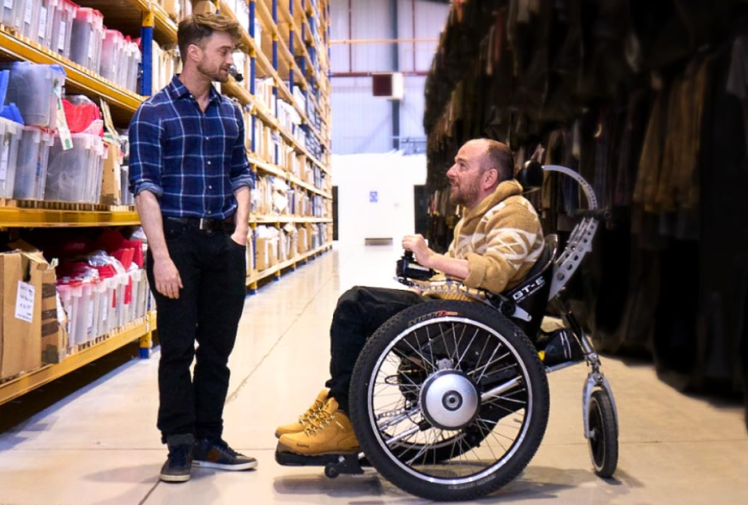 A boy dressed as Harry Potter flies through the air, then rolls down at a dizzying speed from a great height, all in front of blue screens and cameras at the beginning of the trailer for ‘David Holmes: The Boy Who Lived’. David Holmes served as the lead stunt double for Daniel Radcliffe in the blockbuster Harry Potter movies, until he suffered a spinal injury during a stunt. Now in a wheelchair, David’s eyes light up, and a smile graces his lips as he fondly recalls his exhilarating days performing stunts for Harry Potter.