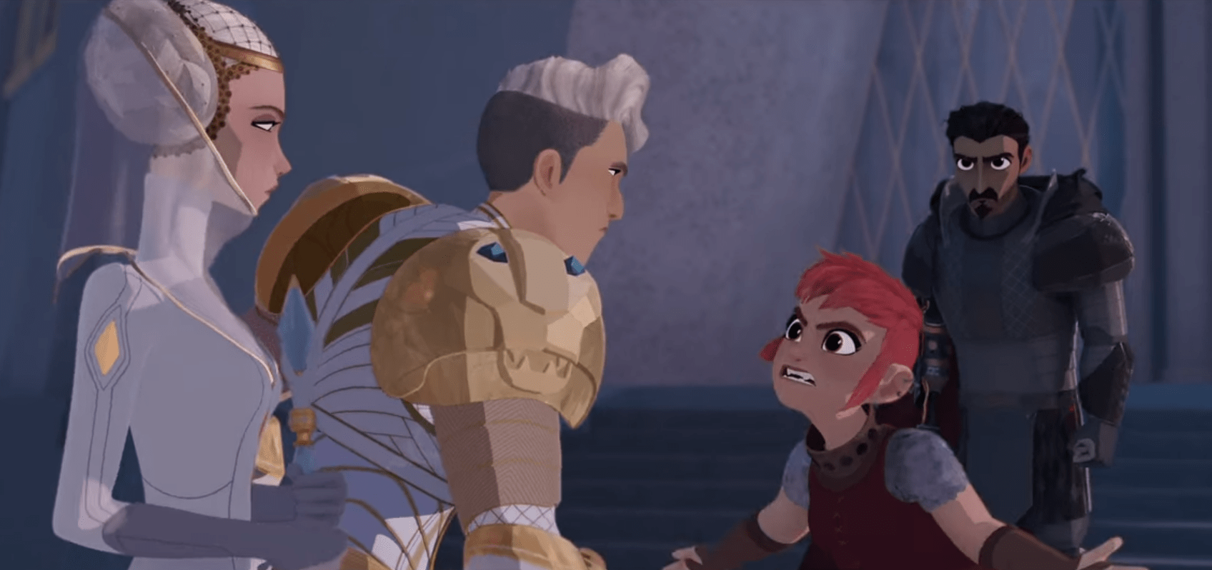“Nimona” is every bit as fun, silly, and entertaining as its trailer promises it to be. So, if you loved the trailer, you’ll love the movie. The animation is colorful and sparkly, and the creators make great use of gold and yellow tones, which adds a royal and fantastical touch to the story. Despite the kingdom being set in a modern world, with subways, flying cars, and smartphones, there is still a sense of magical fantasy.