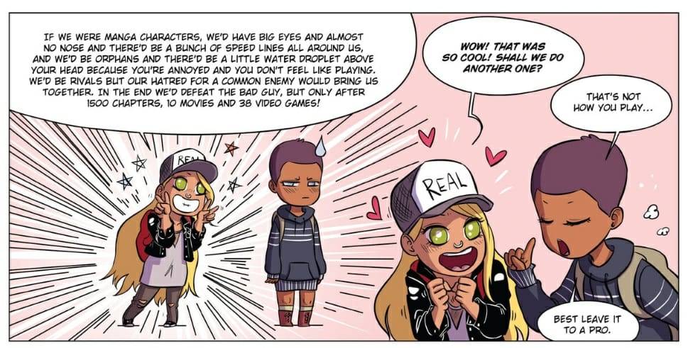 ‘What If We Were…’ is not just about playing pretend, the creator also slips in a simple cute love story without any typical teen drama. And to give the characters more depth, Axelle even deviates from typical comic-book panels and inserts a few diary entries to give a detailed idea about the kind of emotions and thoughts running through the protagonists’ head. Despite being just about 100 pages long, due to the crazy number of topics the girls discuss, the graphic novel feels longer than it is.
