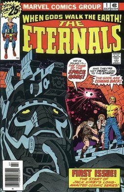 DC/Marvel comic-books came at a price-tag that was considered ‘exorbitant’ for most of us middle-class 90s kids. Although I did watch a little bit of X-Men on Cartoon Network in the early 2000s. The comic books were never an affordable option. So like a lot of average movie fans I wasn’t even aware that Jack Kirby created ‘Eternals’ way back in the 20th century (makes it sound more dramatic and old doesn’t it?). The characters made their first appearance in 1976. Below is the cover from back then, taken off Wikipedia[1] –