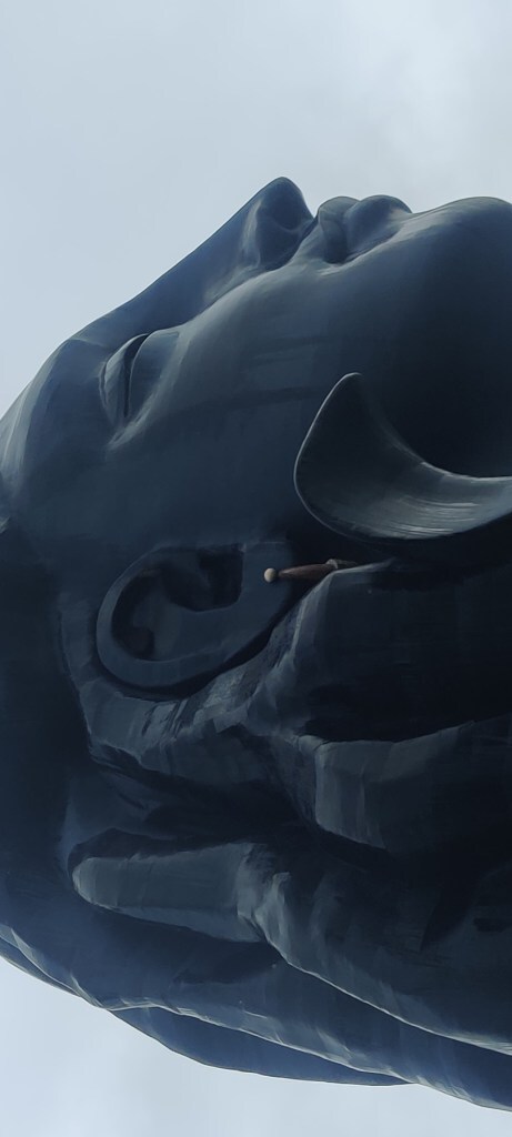 As far as the Adiyogi Statue is concerned, it’s definitely a sight worth beholding for a while. Smiling against a blue sky, with clouds floating over the hills behind, the bust looks surreal and peaceful. It was raining, we had umbrellas, and the statue glistened under the drops, looking even better.