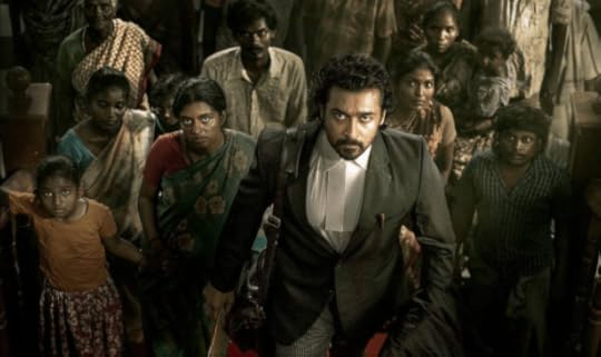 The tone of the film quickly changes, from the idyllic simple lives of the Irulars, it moves to the grim reality of how their community is abused and brutalized by the system. The cops arrest Rajakannu and two of his family members, mercilessly beat them to get a confession, but to no avail. A few days later the cops claim the accused escaped from the police station. Sengani is distraught and doesn’t believe her husband fled, especially after he stoically bore brutal blows for days. She runs pillar to post to find a lawyer who’ll help in her quest to find her missing husband and prove his innocence. Enter Chandru (Suriya), a high court lawyer who doubles up as an activist in his free time, taking part in protests against cases of police brutality. He is known for doing pro bono work for human rights cases and is quick to take up Sengani’s cause.