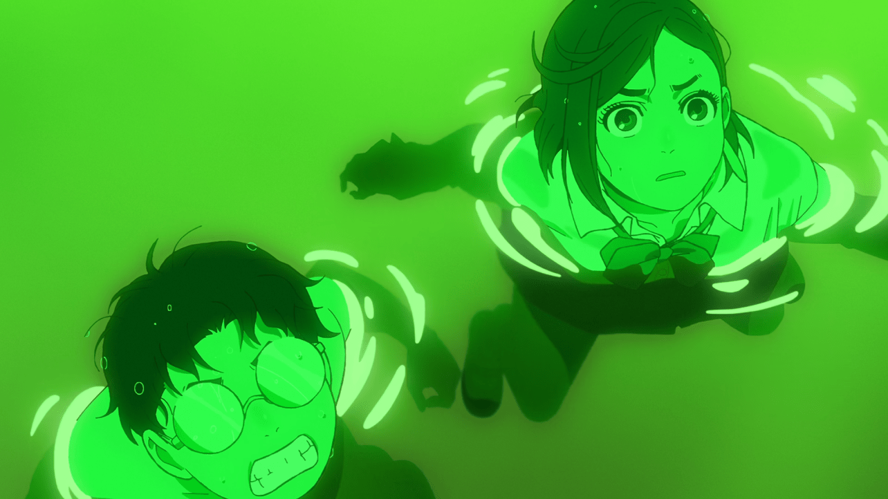 Titled “Merge! Serpo Dover Demon Nessie!”, episode nine focuses on Okarun, Aira, and Momo teaming up to fight the Serpoians, who turn their school into an alternate spiritual dimension that can only be entered by powerful beings. But remember how Momo misunderstands that Okarun and Aira were making out on campus? Well, while fighting the aliens, there’s a lot of funny bickering between the three of them due to teen jealousies.