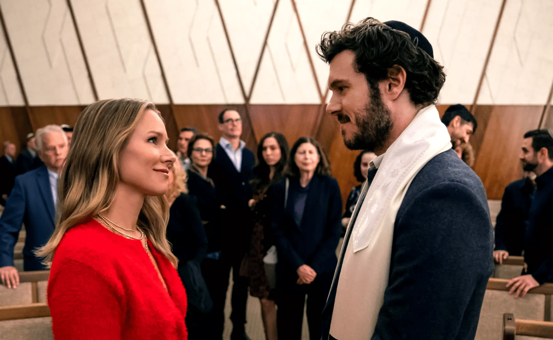 Ashley (Sherry Cola) plays cupid for Rabbi Noah Roklov (Adam Brody) and the atheist/agnostic podcaster Joanne (Kristen Bell). While the rabbi is up for a big promotion at his church, Joanne hosts a show about sex and relationships with her sister Morgan (Justine Lupe) called ‘Nobody Wants This’. So, almost everybody views the blossoming romance between the Rabbi and the non-religious podcaster as ‘weird’, or a joke that will end soon. However, despite their contrasting lives, upbringing, and widely different emotional baggage, Noah and Joanne have the best time together.
