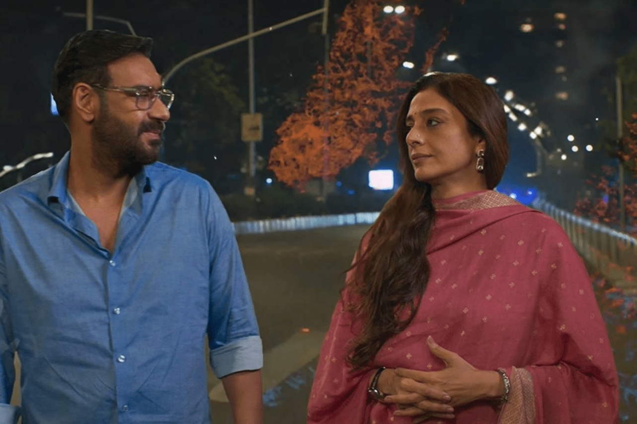 Flashbacks slowly reveal what transpired between the two, with Shantanu Maheshwari (Gangubai Kathiawadi) and Saiee Manjrekar playing the younger versions of Krishna and Vasudha, respectively. Both young actors pull off their roles with ease and grace, without getting lost under the shadows of Ajay Devgn and Tabu, although the older actors do most of the heavy lifting, with the more emotional aspects of the plot rightfully falling on their shoulders.