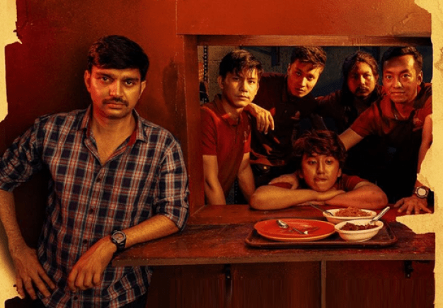 Shrunga B.V. plays Aadarsh, the over-confident, barely working owner of ‘Noodle Home’, who over-works his employees, and treats them with little respect. The first hour of this 2-hour long movie takes its time in introducing the primary characters of the tale and their personal struggles. Aadarsh has a hard time securing a loan for his next venture and discovers that somebody has been stealing from the restaurant’s cashbox. His entire staff is from the north-east of India and they all stay together in a flat paid for by Aadarsh.