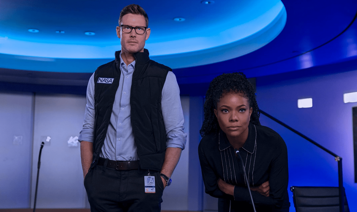 There are a few pop culture references throughout the runtime which are sort of amusing, like Tom Hopper playing Logan O’Leary, Rex’s supervisor at NASA, since Hopper is also known for playing Luther Hargreeves in “The Umbrella Academy,” who lives on the moon for months. Logan develops a crush on Rex; however, the chemistry between the actors is very awkward, which might’ve been deliberate, but it lacks a touch of romance. Gabrielle Union plays Logan’s colleague Pam Proctor, and there might’ve been more chemistry there, if the writers tried.