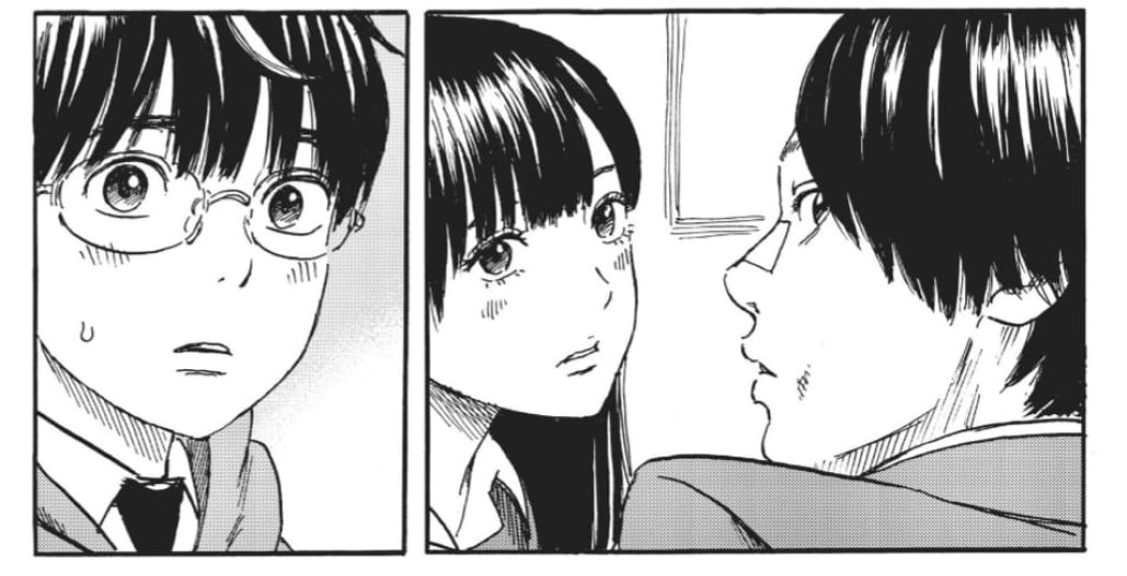 The first 2-3 pages feature colored panels, leading me to believe this was a color manga, but it’s not, which resulted in a slight pang of disappointment. However, Shuzo Oshimi’s black-and-white artwork is clean and expressive and won me over. The art feels like it belongs in a Shōjo manga, especially in scenes that do not feature violence, so the regular high-school scenes look like they could be out of a slice-of-life romance.
