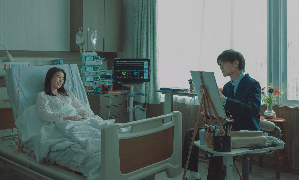 Directed by Takahiro Miko, “Drawing Closer” is based on the Japanese novel “Yomei Ichinen to Senkoku Sareta Boku ga, Yomei Hantoshi no Kimi to Deatta Hanashi.” It opens with the sight of a beautiful clear blue sky, only to turn to a young boy standing on a terrace, contemplating jumping off. The boy is high-school student Akihito Hayasaka (Ren Nagase), a brilliant budding artist whose zest for life is cut short when he is diagnosed with a rare heart condition and the doctors say he might have only a year to live. Fortunately, he is distracted by a sound, leading him to Haruna Sakurai (Natsuki Deguchi), a teen girl who is drawing something in a sketchbook on the same hospital terrace. Haruna reveals she has six months to live with a smile, claiming she is looking forward to dying as she hopes for a better afterlife. Inspired by her positive approach, Akihito starts visiting Haruna regularly at the hospital, and the two become close friends. However, Akihito chooses to hide his heart condition from her.