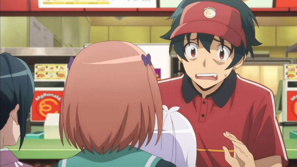 The fearsome Demon Lord Satan has almost conquered the kingdom of Ente Isla when he is defeated in battle by the hero Emilia. Before being fully vanquished, he makes his escape through a dimensional gateway and lands in modern-day Japan along with his loyal general Alsiel. Except, having lost almost all their magic, the demonic duo are reduced to lowly human forms and forced to live as normal people. Satan, after a couple of amusing scenarios trying to figure out the basics of this new world, takes on the name Maou Sadou, moves into a tiny rented apartment with Alsiel (now Ashiya), and gets a part-time job flipping burgers at MgRonalds. While also secretly working on ways to slowly collect whatever little magical energy exists around. One day, Maou believes, he will have enough magic to regain his powers and return to his realm, but for now, the conquest of Ente Isla will have to wait. Right now he has another pressing mission – to become Employee Of The Month.
