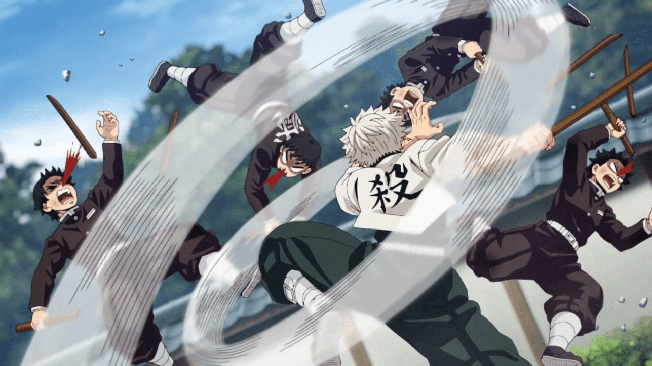 Surprisingly, there are no signs of demons or Muzan Kibutsuji in this chapter at all. However, Wind Hashira Sanemi Shinazugawa appears in the second half of the episode and treats his juniors just as badly as a demon would, if not worse. Sanemi is mean to the point of being cruel, making his part of the training both amusing and nail-biting, since he doesn’t even care if his training method and temper end up killing sub-plot. Apart from his mean nature, Sanemi’s subplot also delves into his stormy relationship with his younger brother Genya.