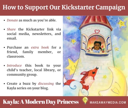 There are SO many ways you can support this Kickstarter campaign. No matter the pledge amount, YOU are making an impact on young readers everywhere.Kayla: A Modern-Day Princess: