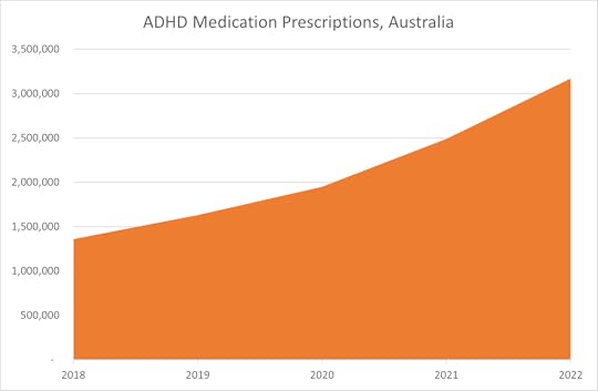 The ‘rambunctious’ kids Bradley was treating would today be diagnosed as having ADHD (Attention Deficit Hyperactivity Disorder). According to data revealed this week by the health department, over the past five years the number of Australians receiving prescriptions for ADHD medications has more than doubled. A total of 3.2 million prescriptions were dispensed in Australia during 2022. This represents a massive rise over the 1.4 million prescriptions written in 2018.