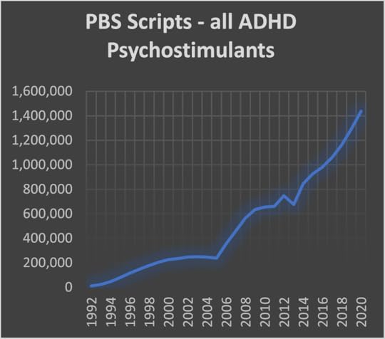 In 2020 the Australian Pharmaceutical Benefits Scheme (PBS) subsidised almost 1.5 million prescriptions for ADHD (attention deficit hyperactivity disorder) medication. That is double what it was just 8 years ago and is ten times the number from 1997. We don’t have accurate current Australian statistics on ADHD but if the rate of growth in prescription drugs is any kind of guide, we have a very big problem, and it is growing at more than 10% a year.