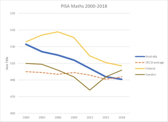 In 2009, Sweden’s experienced what they described as a PISA-Shock. Sweden’s PISA maths result dropped below the OECD average, something Australia has just managed to emulate. In 2012 Sweden’s results plummeted even further, but by then plans to recentralize the Swedish education system were well under way due to a series of reforms implemented as a direct result of the 2009 PISA-Shock.