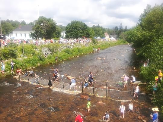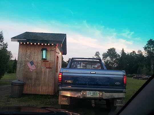 To celebrate our anniversary, D and I went on a weekend trip to Franconia Notch State Park, where we saw bears (in the backyard of our B&B!), hiked a gorge, had some amazing pizza (jalapeno-cream-cheese-stuffed crust....YUM), backed some plastic duckies in the town Lions' Club annual duck race fundraiser, caught the 4th of July "Home Day" parade, swam in the lake, visited Frost Place on Frost Day, and fulfilled a long-time yearning (er, of mine) to go to a drive-in movie, something I haven't done in almost twenty years. I am going to suggest you peruse the snack bar menu of the Northern Nights Drive-In because it is American thing of beauty. We took full advantage with chocolate milkshakes, cheeseburgers, chicken fingers...and even a meatball sub. When in New Hampshire...