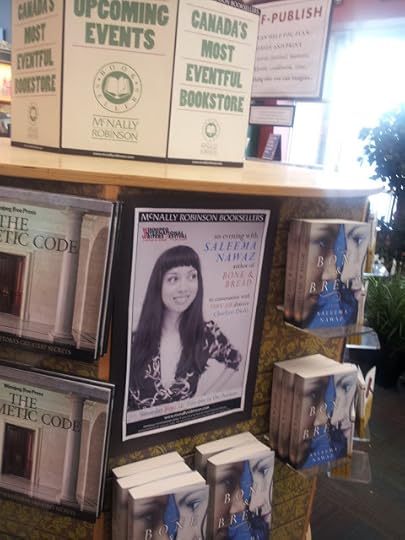 Thanks to some very accommodating friends, I was able to pre-schedule seven separate hang-outs over the course of the weekend, along with the planned bookstore reading. I saw new babies, new houses, and shared a cup of bacon. I had the most delicious homemade brunch in St-Boniface, a wonderful salad at Prairie Ink, and gin and tonics in Wolseley. I dished with poets, fiction writers, graphic novelists, and above all, loved all the low-key hanging out and catching up with friends. I miss you, Winnipeggers! So nice to see you all. The reading itself went well, I think, and at least was not entirely populated by people I know. Most importantly, there were people there (never a guarantee!). Thank you so much to everyone who showed up!!