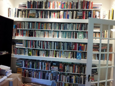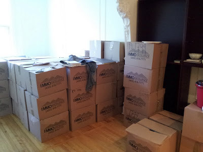 Looking at that wall of books makes me feel like we've made a lot of progress until I turn around and see all the packed boxes of books that are still remaining: