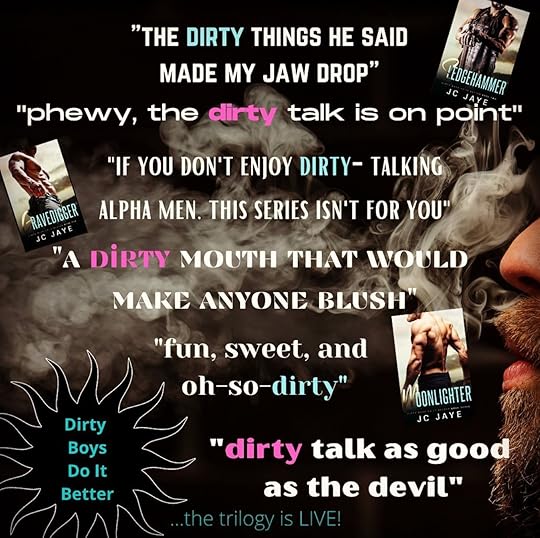 Reminder… Each title in Dirty Boys is a standalone and easily enjoyed on its own, but because this trio of badass buds are thick as thieves and share many a bro-bonding, F-bombing moment, I recommend diving into all of their steamy, smexy, and snarky stories… Three times the heat!